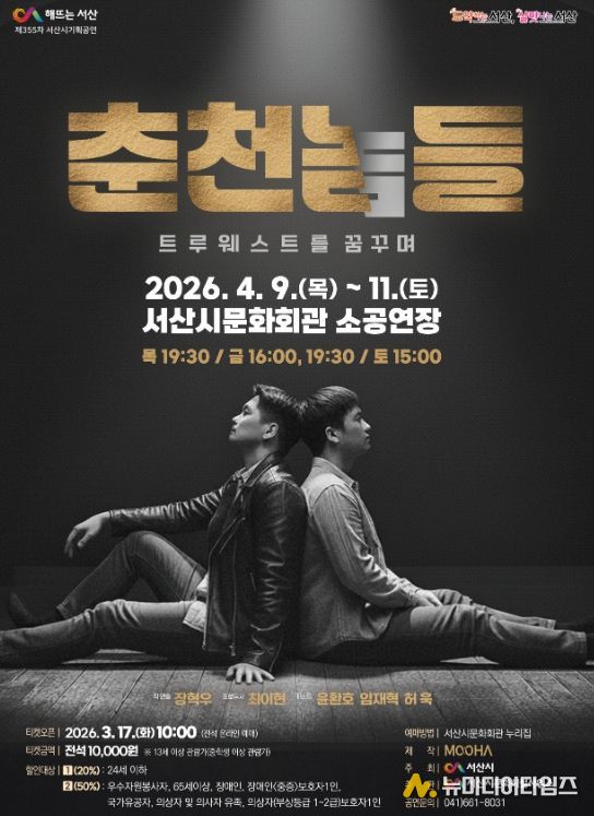정동호 서산시 문화시설사업소장은 “연극 ‘춘천놈들’은 꿈을 좇는 청춘들의 이야기 속에서 현실의 고민과 우정의 의미를 진솔하게 담아낸 작품”이라며 “시민들이 공감과 감동을 함께 느낄 수 있는 시간이 되길 바란다”라고 말했다.