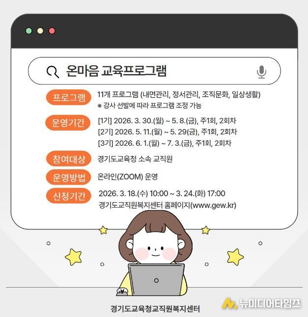 경기도교육청교직원복지센터가 교직원의 정서 회복과 자기 돌봄 역량 강화를 위해 녪년 상반기 온마음 교육 프로그램’를 운영한다.