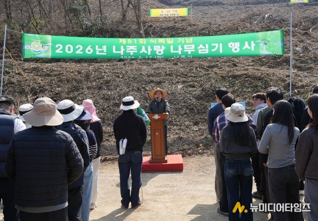 전남 나주시가 탄소중립 실천과 지속 가능한 산림 조성을 위해 시민과 함께하는 나무심기 행사를 열고 생활권 녹지 확충에 나섰다.