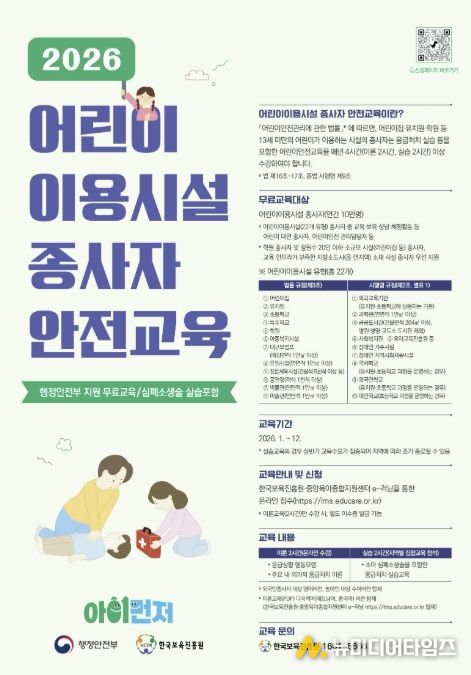 이번 교육은 '어린이 안전관리에 관한 법률'에 따른 법정 의무교육으로, 어린이집·학원·유치원·초등학교 등 13세 미만 어린이가 주로 이용하는 시설의 종사자를 대상으로 한다. 대상 종사자는 응급처치 실습 2시간 이상을 포함해 매년 4시간 이상의 안전교육을 이수해야 한다.