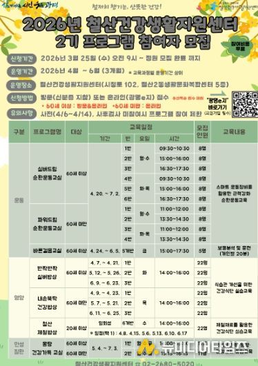 광명시 보건소 철산건강생활지원센터가 ‘2026년 건강생활 프로그램 2기’ 참가자를 오는 25일 오전 9시부터 선착순 모집한다.