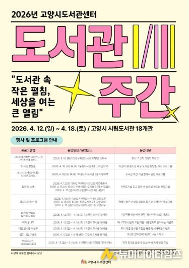 프로그램 신청은 오는 3월 25일 오전 10시부터 고양시도서관 누리집에서 가능하며, 이벤트는 4월 12일부터 18일까지 별도 신청 없이 참여할 수 있다.