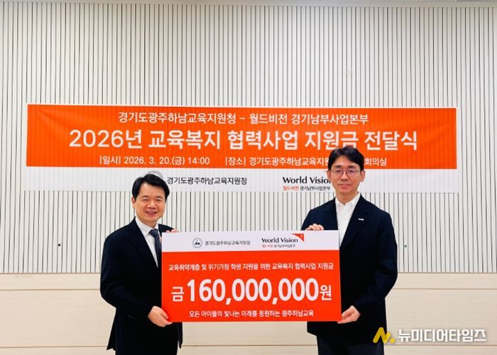 경기도광주하남교육지원청은 3월 20일 광주하남교육지원청에서 월드비전 경기남부지역본부(본부장 최성호)와 함께 교육취약계층 학생 지원을 위한 지원금 전달식을 개최했다.
