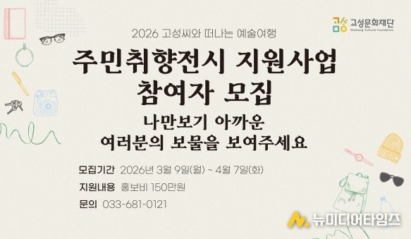 평화 경제 거점 도시 강원 고성군 산하 (재)고성문화재단은 주민이 자신의 취향과 삶의 이야기를 전시로 풀어내는 참여형 문화사업 ‘주민취향전시 지원사업’을 추진한다.