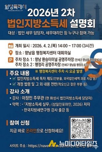 화성특례시 만세구청이 지난 1차 설명회의 뜨거운 관심에 힘입어, 오는 4월 2일 오후 2시 향남읍 행정복지센터에서 ‘2차 법인지방소득세 설명회’를 개최한다.