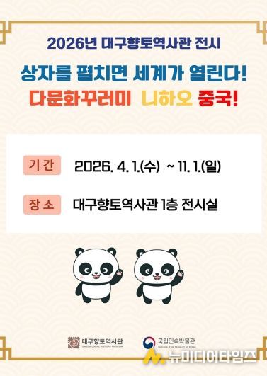 대구문화예술진흥원 박물관운영본부 소속 대구향토역사관은 국립민속박물관이 주관하는 ‘2026 다문화꾸러미 대여 운영’ 공모사업에 선정되어, 올해 중국 다문화꾸러미를 활용한 다양한 사업을 운영한다.