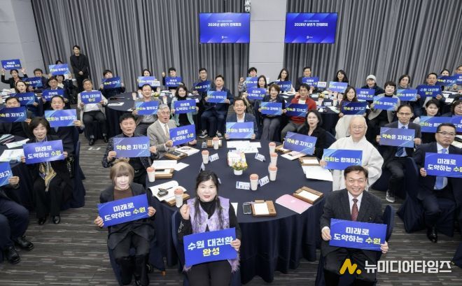수원시 새로운수원위원회는 26일 시청 중회의실에서 2026년 상반기 전체회의를 열고, 공약 사업 평가 결과를 발표했다.