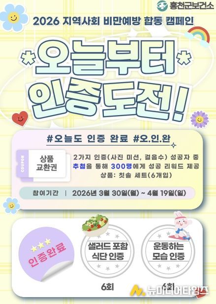 홍천군보건소는 비만 예방 합동 캠페인의 일환으로 군민의 비만 인식을 개선하고 건강한 생활 습관 형성을 돕기 위한 ‘#오늘도 인증 완료’챌린지를 운영한다.