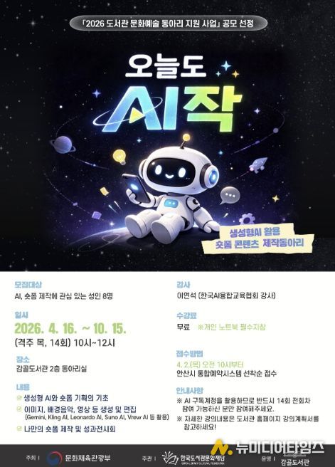안산시 감골도서관은 문화체육관광부가 주최하고 한국도서관문화재단이 주관하는 ‘2026년 도서관 문화예술 동아리 활동 지원 사업’에 선정됐다고 27일 밝혔다.