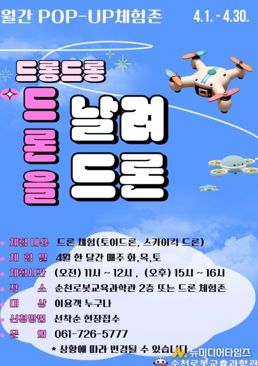 시 관계자는 “체계적인 로봇 교육과 팝업 체험존을 통해 아이들이 로봇·드론과 자연스럽게 친해지고, 미래 과학기술에 대한 호기심을 키우는 계기가 되길 바란다”며 “앞으로도 순천로봇교육과학관의 특성을 살린 다양한 교육·체험 프로그램을 꾸준히 선보이겠다”고 말했다.