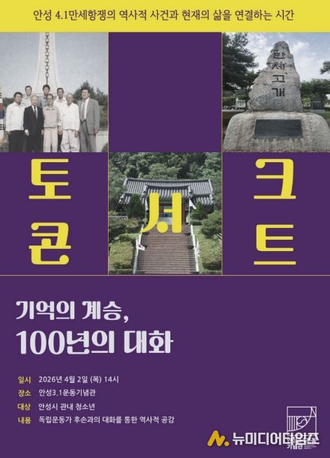 안성3.1운동기념관은 4월 2일, 4·1만세항쟁 기념일을 맞이하여 관내 중학교 학생 30명을 대상으로 청소년 교육 프로그램 '기억의 계승, 100년의 대화'를 운영한다. 이번 교육은 학생들에게 지역 역사에 대한 이해와 자긍심을 심어주기 위해 마련됐다.