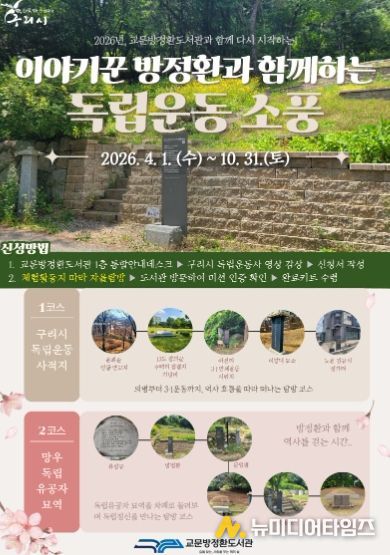 구리시는 오는 4월 1일부터 10월 31일까지 『이야기꾼 방정환과 함께하는 독립운동 소풍』 프로그램을 운영한다고 밝혔다.