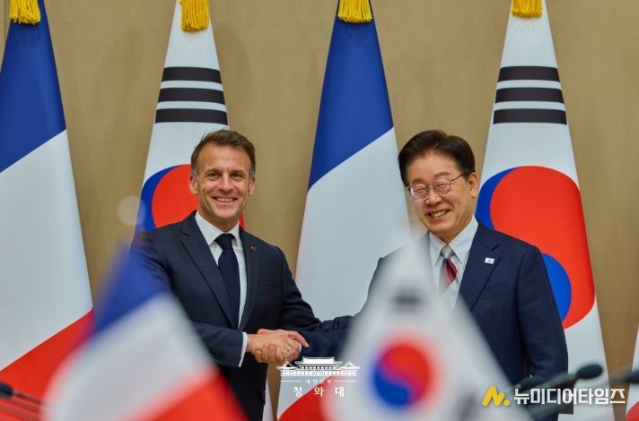이 대통령은 이날 국빈 방한 중인 에마뉘엘 마크롱 프랑스 대통령과 정상회담 이후 열린 공동언론발표에서 "중동전쟁이 야기한 경제 및 에너지 위기에 공동 대응하고자 정책 경험과 전략을 공유하고, 글로벌 경제의 불확실성 해소를 위해 함께 노력하기로 했다"며 이같이 말했다.