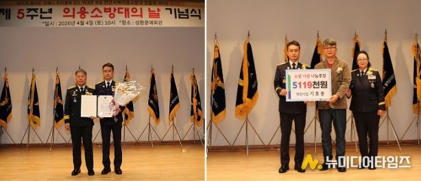 이날 기념식에 앞서 천안시민 기호중씨의 소방나눔 후원 행사도 가졌다. 천안시 서북구 성환읍에 거주하며 어려움에 처한 이웃을 도와 온 기호중씨는, 무보수로 활동하는 의용소방대원들의 이웃 사랑 실천에 감동하여 의용소방대 발전에 쓰라며 5119천원을 후원했다.