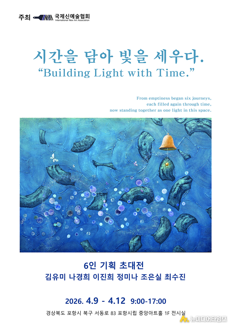 포항에서 신진 작가 6인의 작품 세계를 한자리에서 만날 수 있는 기획전 ‘시간을 담아 빛을 세우다(Building Light with Time)’가 4월 9일부터 12일까지 포항시립중앙아트홀 1층 전시실에서 열린다.
