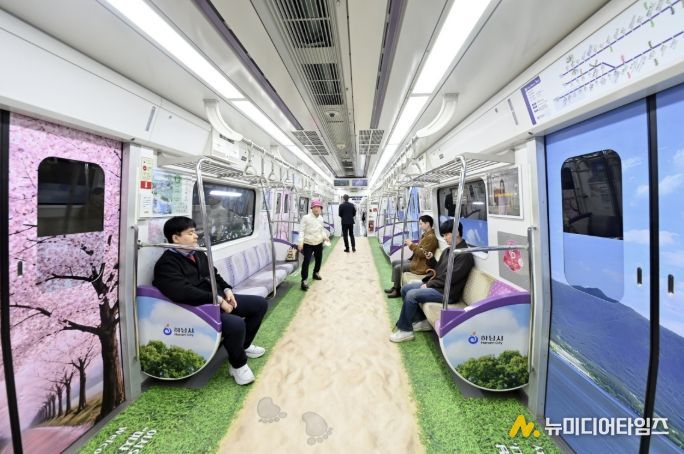 오는 9월까지 약 6개월간 운행되는 풍경열차는 하남선 전동차 1개 객차를 대상으로 운영된다. 객차 내부는 미사한강모랫길의 부드러운 질감과 하남벚꽃길의 화사함, 그리고 평화로운 한강의 풍경이 빈틈없이 랩핑되어 승객들에게 마치 하남의 명소 한복판으로 걸어 들어온 듯한 시각적 압도감을 선사한다.