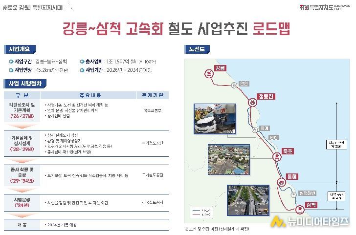 강원특별자치도는 4월 7일 오전 11시 30분, 강릉~삼척 고속화 철도 사업의 핵심 구간인 삼척을 방문해 사업 추진 일정과 향후 추진 방향을 점검했다.