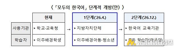 교육부와 한국교육학술정보원(원장 정제영)은 국정과제 101번 ‘교육격차 해소를 위한 공교육 강화’의 일환으로, 이주배경학생 한국어교육을 위해 운영 중인 '모두의 한국어' 시스템의 사용기관과 학습자 범위를 단계적으로 확대한다고 밝혔다.