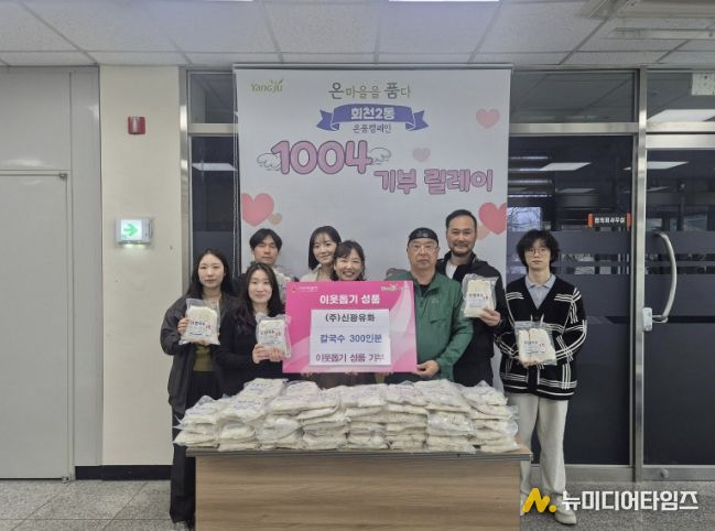 양주시 회천2동은 9일 ㈜신광유화에서 직장공장새마을운동 양주시협의회를 통해 지역 내 취약계층을 위한 칼국수 300인분을 기탁했다고 밝혔다.