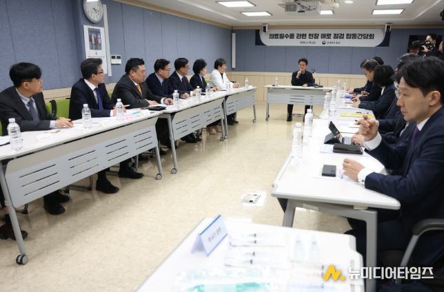 김민석 국무총리는 4월 10일 의료필수품 관련 부처 합동 간담회를 주재하고 의약계 및 의료용품 제조‧유통업계 관계자로부터 애로 사항을 청취했다