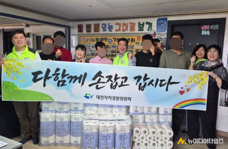 대전자치경찰위원회는 ‘제46회 장애인의 날’을 맞아 4월 15일 서구 평촌동에 있는 ‘꿈이 있는 장애인 단기 보호센터’를 방문해 화장지 600롤과 키친타월 등 생활필수품을 전달했다.