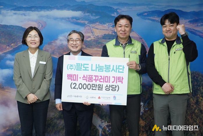 나주시는 15일 ㈜팔도 나눔봉사단이 지역 내 취약계층과 아동들을 위해 2천만 원 상당의 후원 물품을 기탁했다고 밝혔다.