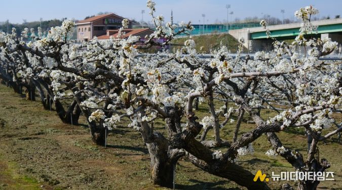 충북 영동군 영동읍 매천리 과일나라테마공원이 봄기운이 완연해지며 과일꽃이 만개한 가운데, 수령 100년이 넘는 ‘백년배’ 나무가 장관을 이루며 방문객들의 발길을 사로잡고 있다.