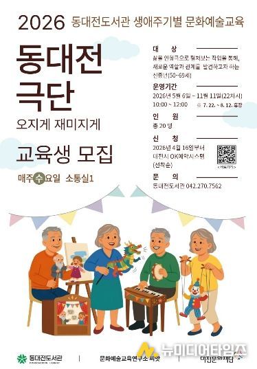 해당 프로그램은 동대전도서관과 지역 문화예술단체 ‘문화예술교육연구소 씨앗’이 협업해 기획한 것으로, 대전문화재단 주관 ‘2026년 문화예술교육 지원사업’에 선정되어 추진된다.