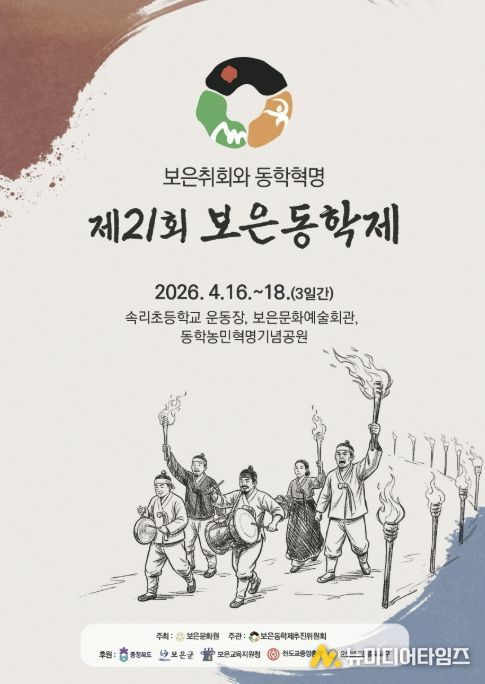 이경숙 문화관광과장은 “보은동학제는 동학농민혁명의 정신과 가치를 군민과 함께 되새기는 뜻깊은 자리”라며 “역사와 체험, 공연이 어우러진 이번 축제를 통해 동학의 의미를 보다 쉽고 가깝게 느낄 수 있기를 기대한다”고 말했다.