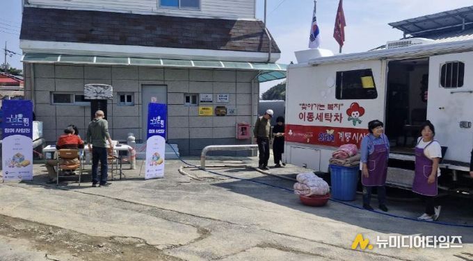 계룡시는 15일 두마면 왕대2리 일원에서 이동세탁차와 연계한 ‘찾아가는 그냥드림’ 서비스를 노인가구 등 총 16가구를 대상으로 처음 운영했다고 밝혔다.