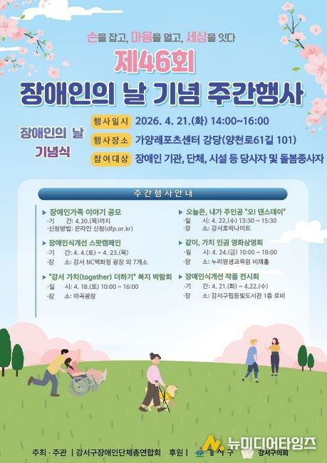 서울 강서구는 4월 20일 장애인의 날을 맞아, 오는 18일부터 일주일간 ‘제46회 장애인의 날 기념 주간행사’를 개최한다고 밝혔다.