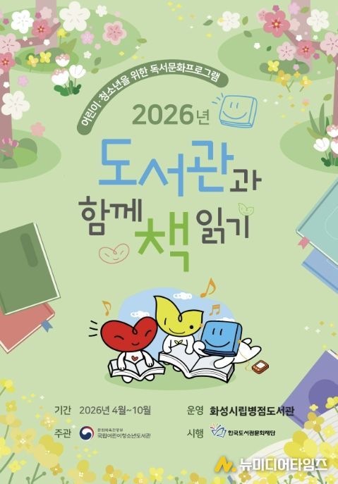 (재)화성시문화관광재단 병점도서관이 국립어린이청소년도서관이 주최하는 ‘2026년 도서관과 함께 책 읽기’ 공모사업 수행기관으로 선정되어 프로그램을 4월부터 10월까지 운영한다고 밝혔다.