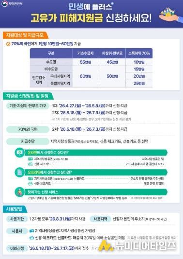 이어 2차 신청 대상자인 소득 하위 70%(약 13만 명 추산)에게도 10만 원을 지급해 유가 상승으로 인한 물가 부담을 전방위적으로 완화할 계획이다.