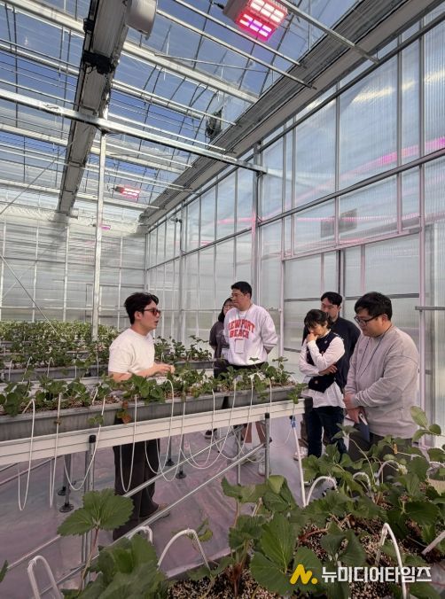 이어 실습 교육은 토마토, 딸기, 엽채 분야로 나눠 1조당 6명씩 조를 편성해 로테이션 방식으로 진행했다. 교육생들은 작목별 재배 환경과 관리 방법의 차이를 직접 확인하며 스마트팜 운영의 기초를 익혔다.