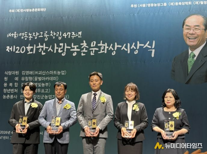 충북 괴산군은 지난 16일 (재)한사랑농촌문화재단이 주관하는 ‘제20회 한사랑농촌문화상’을 ㈜괴산스마트농업 김영애 대표가 수상했다고 밝혔다.