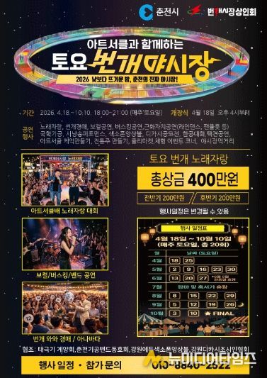 시 관계자는 “번개야시장은 시민 일상 속 야간 여가 공간이자 지역 상권을 살리는 실질적인 소비 거점”이라며 “앞으로도 다양한 콘텐츠를 더해 춘천을 대표하는 야간 명소로 키워나가겠다”고 말했다.