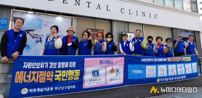 바르게살기운동 부산남구협의회(회장 신상진)는 4월 15일 오후 1시, 대연사거리 일대에서 고유가 및 에너지 위기 극복을 위한 ‘에너지 절약 실천 캠페인’을 펼쳤다.