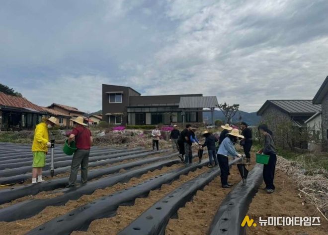 춘천시 농업기술센터와 춘천시 청년4-H연합회가 17일 신북읍 율문리 일원 농지 991㎡에서 감자 정식 작업을 마치고 공동과제포 영농 활동에 들어갔다.