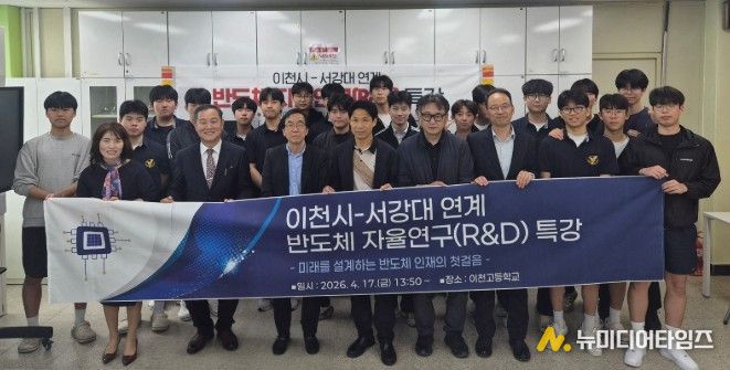경기도이천교육지원청은 2026년 '서강대학교 연계 반도체 프론티어 자율연구 프로그램'의 시작으로 4월 17일 이천고등학교 화학실에서 반도체 산업·기술·진로 특강을 운영했다.