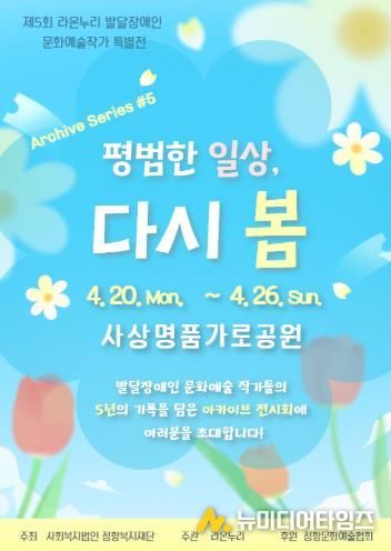 부산 사상구는 장애인거주시설 라온누리(엄궁동)가 오는 4월 20일부터 26일까지 사상 명품가로공원 일대에서 제5회 라온누리 발달장애인 문화예술 작가 특별전 ‘평범한 일상, 다시 봄’을 개최한다고 밝혔다.