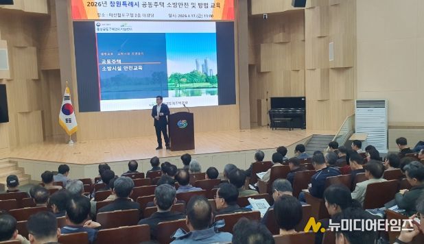 창원특례시는 공동주택의 안전한 주거환경 조성과 체계적인 시설 관리를 위해 지난 17일, 마산합포구청 대회의실에서 공동주택 관리주체를 대상으로 ‘2026년 상반기 공동주택관리 소방안전 및 방범교육’을 실시했다고 밝혔다.