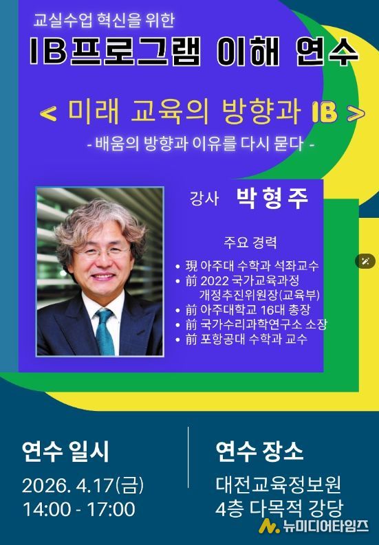 대전시교육청은 4월 17일 오후 대전시교육청 대강당에서 관내 교원 및 교육 전문직원 210명을 대상으로 ‘2026학년도 IB 프로그램 이해 연수’를 개최했다.