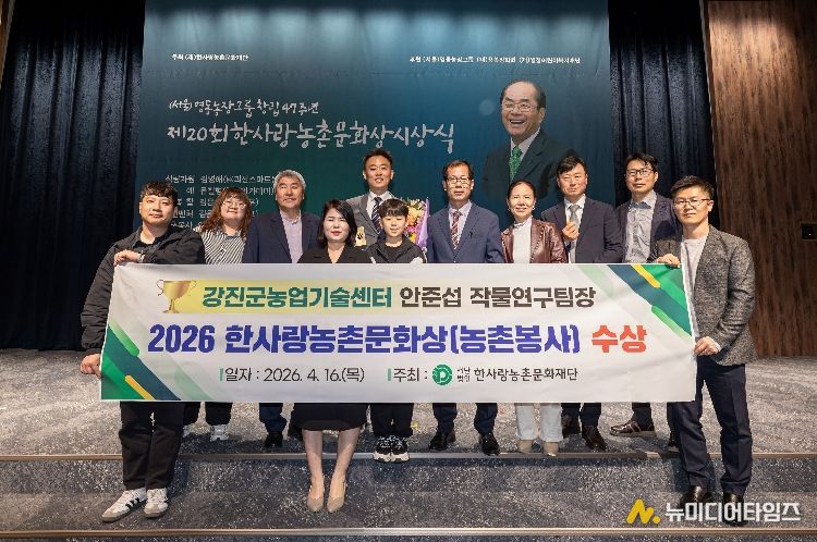 강진군은 한사랑농촌문화재단이 주관하는 ‘한사랑농촌문화상’ 농촌봉사 부문에서 강진군 농업기술센터 안준섭 작물연구팀장이 수상의 영예를 안았다고 20일 밝혔다.