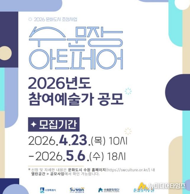 수원문화재단은 지역 예술가의 작품 판로 확대와 지속가능한 창작 활동 기반 마련을 위해 2026년 ‘수문장 아트페어’ 참여 예술가를 모집한다.