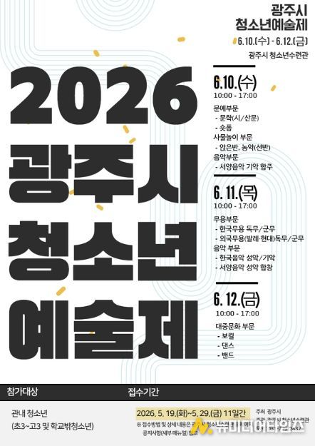 광주시는 ‘2026년 광주시 청소년예술제’ 참가자를 모집한다고 20일 밝혔다.