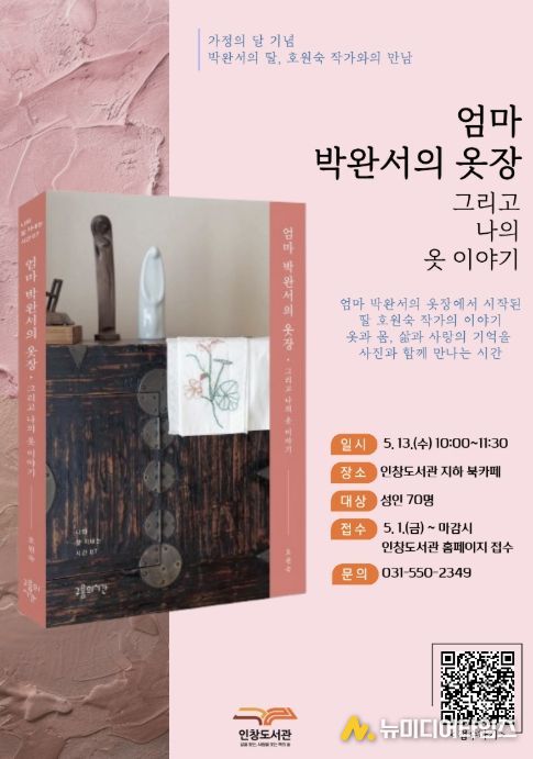 구리시립도서관은 '호원숙 작가와의 만남 ‘엄마 박완서의 옷장, 그리고 나의 이야기’' 참여 신청을 오는 5월 1일부터 접수한다고 밝혔다.