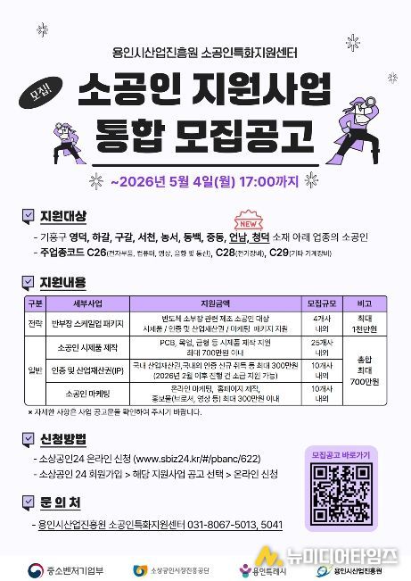 용인시산업진흥원 소공인특화지원센터는 용인시 소재 소공인의 경쟁력 강화를 위해 소공인 지원사업을 본격 추진하고, 참여기업 총 49개사를 모집한다고 밝혔다.