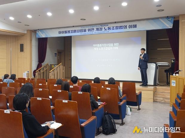 경기도아이돌봄광역지원센터는 20일 경기도인재개발원 다산홀에서 도내 31개 시군 아이돌봄서비스 제공기관 종사자와 관련 공무원을 대상으로 ‘2026년 노동조합법 이해 교육’을 개최했다.