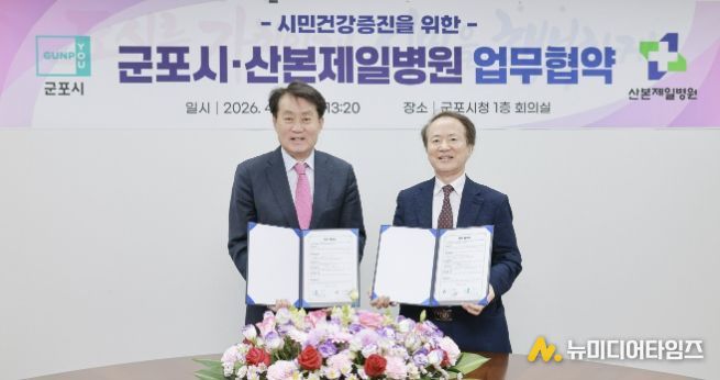 군포시는 4월 20일 시청 1층 회의실에서 산본제일병원과 ‘시민 건강증진 및 의료서비스 질 향상을 위한 업무협약(MOU)’을 체결했다.