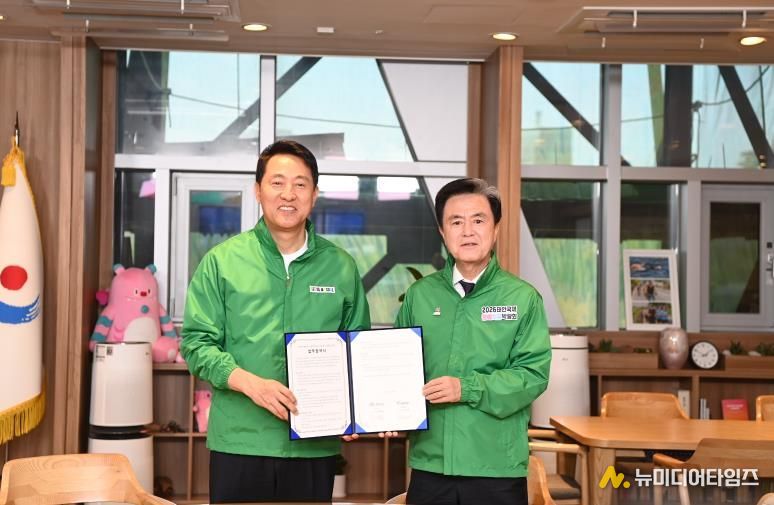 김태흠 충남도지사는 22일 서울시장 집무실에서 오세훈 시장과 ‘태안국제원예치유박람회(태안박람회)와 서울국제정원박람회(서울박람회) 성공 개최를 위한 업무협약’을 체결했다.